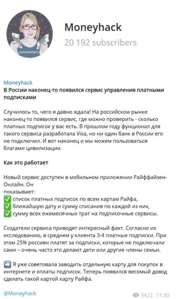 Transferring subscriptions from cards of other banks to Raiffeisen Bank card to see all subscriptions in one place.