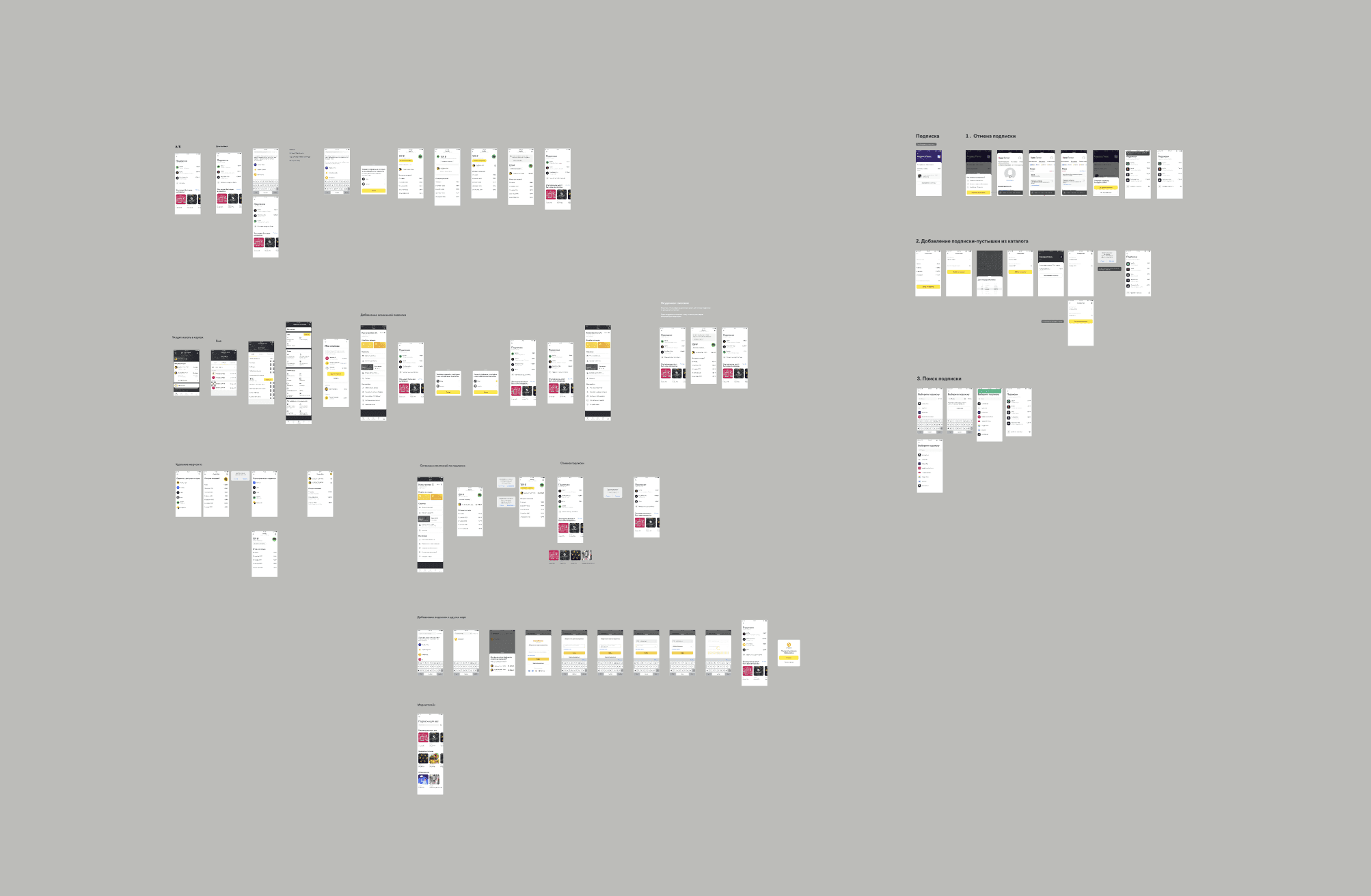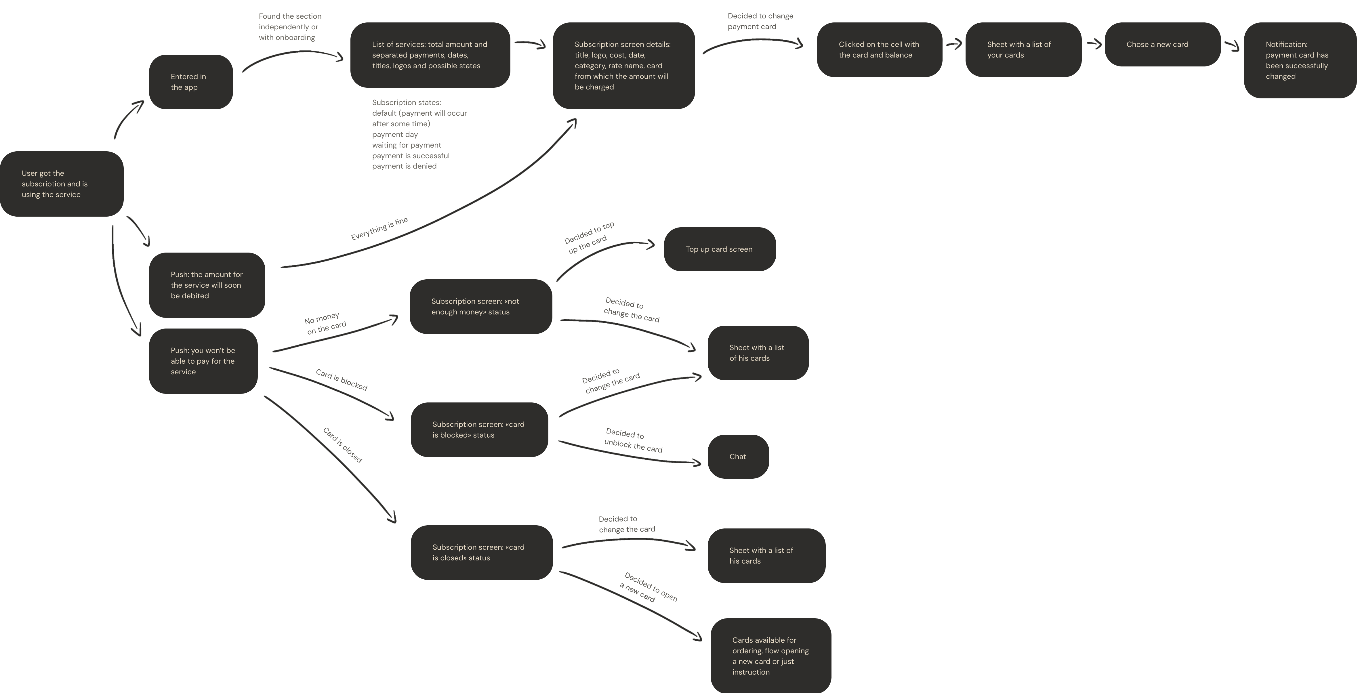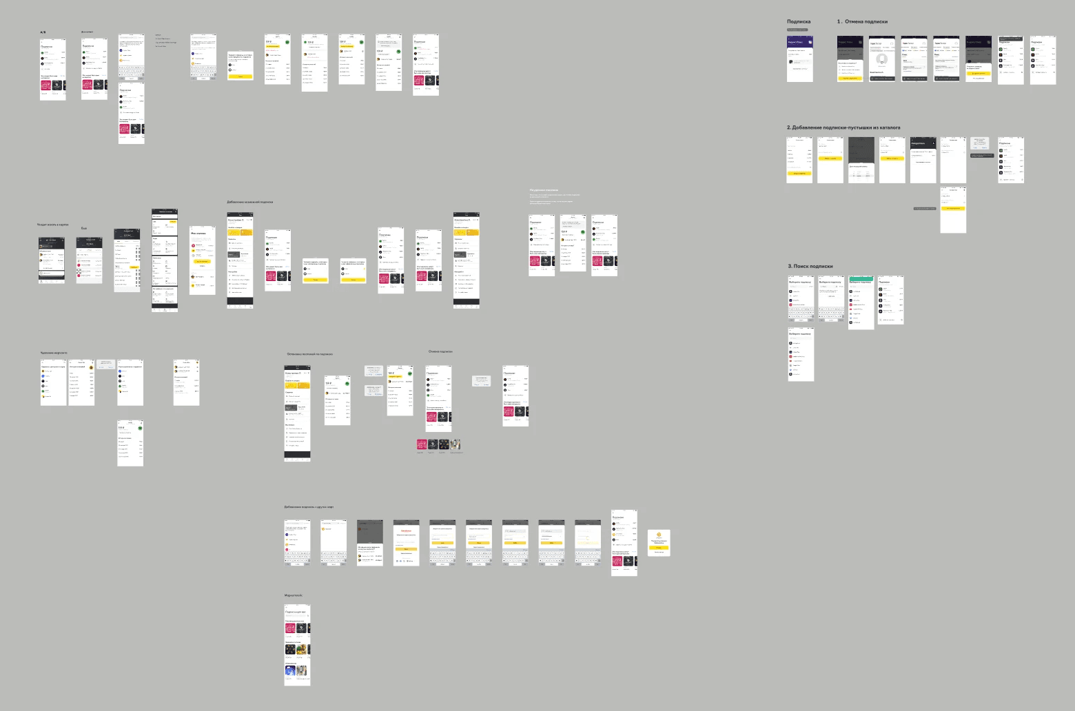 I sketched out low-level flows. For the touchpoint of the subscriptions list, two hypotheses emerged, with one related to the functionality of the team that worked on payments. We brainstormed and collaborated with designers from another team to outline how our feature could be integrated into their functionality.
